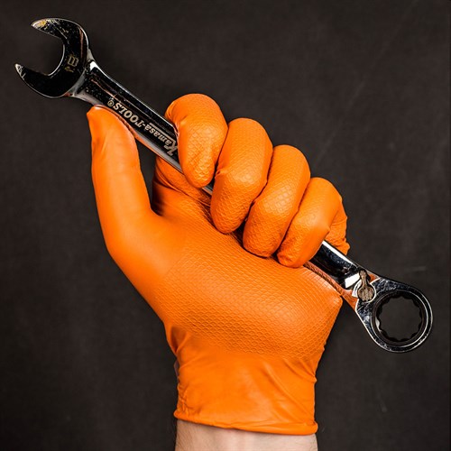 Nitril, pudderfri. Oransje farge.