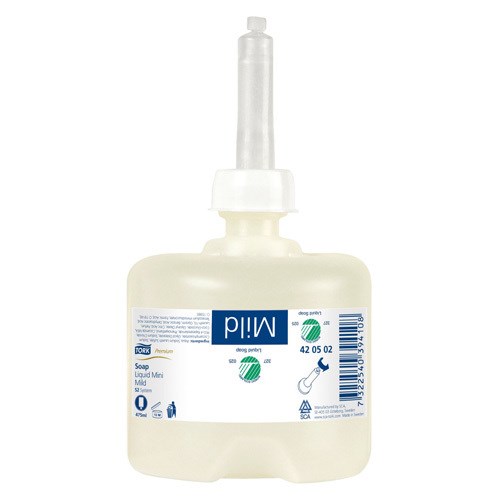 Såpe mild flytende 475ml Tork Premium Rengjør & tar vare på huden. Hudvennlig mild formel. En flaske inneholder 0,475 liter. Perfekt til den daglige håndvasken