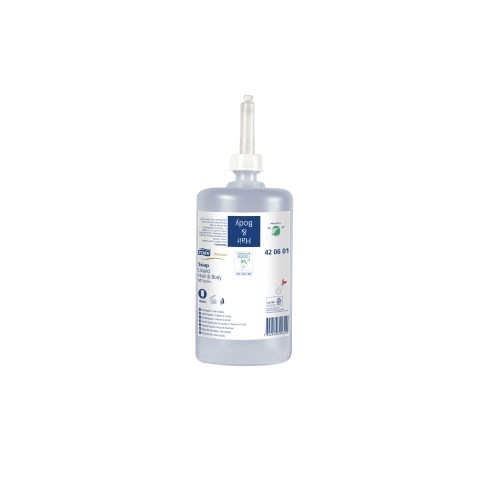 Tork Premium Flytende Såpe Hair & Body er et kombinert såpe- og shampoo-produkt for hele kroppen, inkludert håret. Den er kremaktig og dermatologisk testet, med tykt og kremaktig skum. Dette produktet passer f.eks. til hotelldusjer, sportsfasiliteter og skoler.