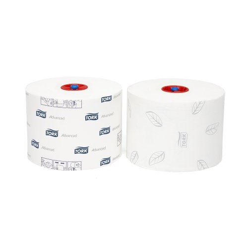 Kompakt Toalettrull i advanced kvalitet som passer i T6 dispenser autoskift. 2-lags, uperforert papir med grå løvblader og 100 meter på rullen.