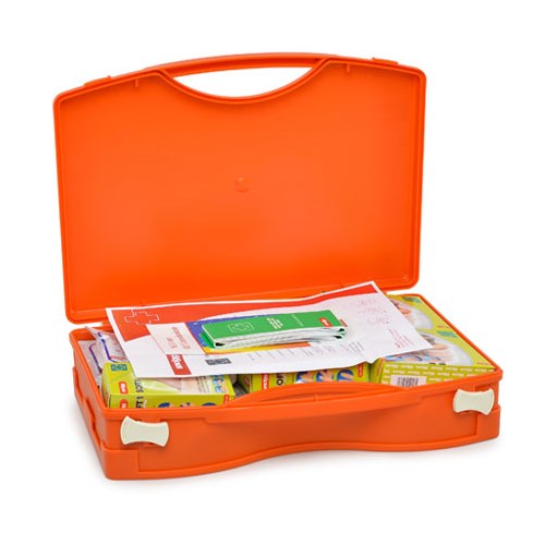 Kofferten innholder: Soft 1 Limfritt plaster i to størrelser Burnshield 60x40 Burnshield 10x10 Burnshield 20x20 Hydrogel Cools the Burn 125ml Førstehjelphefte Brosjyre Burnshield Liten